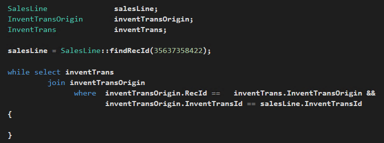 Con esto podemos asegurar que recuperamos las transacciones de inventario correspondientes a la tabla SalesLine(Usando el mismo código podríamos obtener las transacciones de las diferentes tablas que se relacionan, solo sustituyendo claramente la tabla que generan las transacciones), y poder procesarlas para lo que se nos haya requerido, que principalmente es solicitado para temas de adición a reportes o cálculos en procesos.